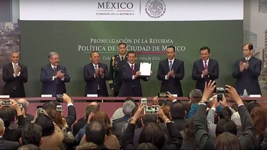 Como un hecho histórico, el presidente de México, Enrique Peña Nieto, firmó este viernes, 29 de enero, la Reforma Política de la Ciudad de México, con lo cual se pone punto final al Distrito Federal y se establecen los mecanismos para la creación de una Constitución Política para la Ciudad Mexicana.