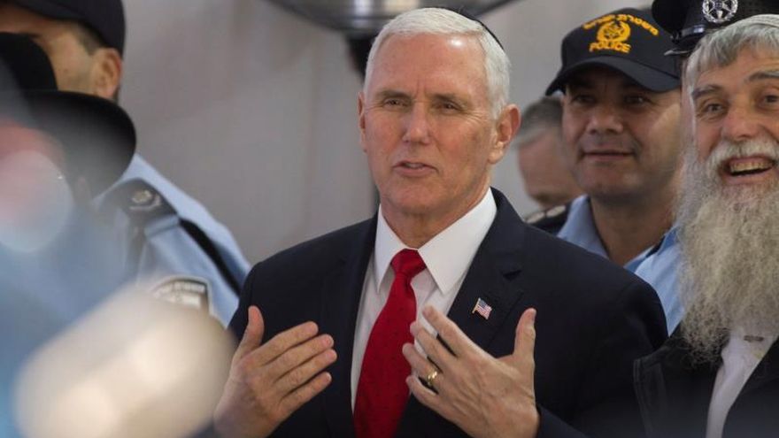 Pence cerró su agenda esta tarde en Jerusalén con una simbólica visita al Muro de las Lamentaciones (el principal lugar de culto judío), situado en la Ciudad Vieja, en la parte oriental de la urbe.