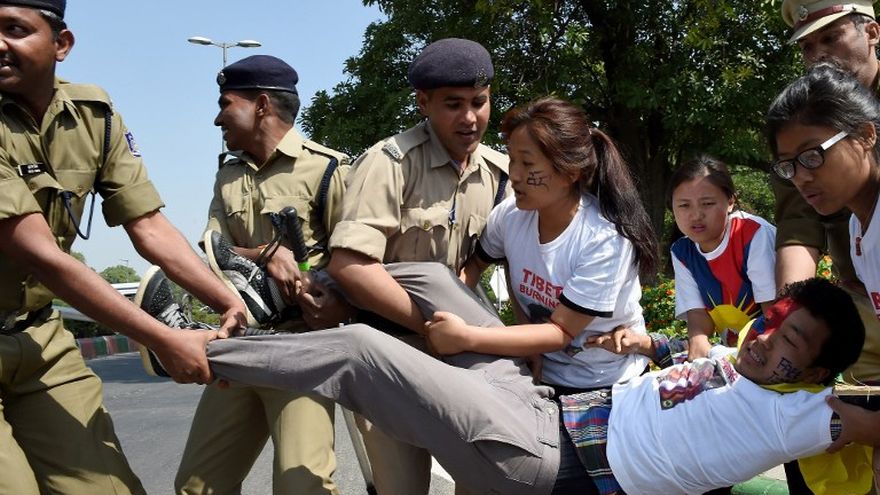 La protesta pretendía conmemorar el 56 aniversario del alzamiento, que llevó a la huida del Dalai Lama, líder espiritual de los tibetanos, y a que se estableciera un gobierno tibetano en el exilio en una localidad del norte de India.