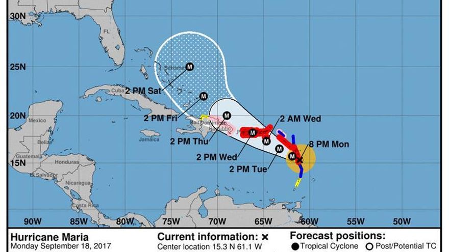 Gráfico cedido por el Centro Nacional de Huracanes (CNH) que muestra el recorrido y la posible trayectoria del huracán María. / EFE