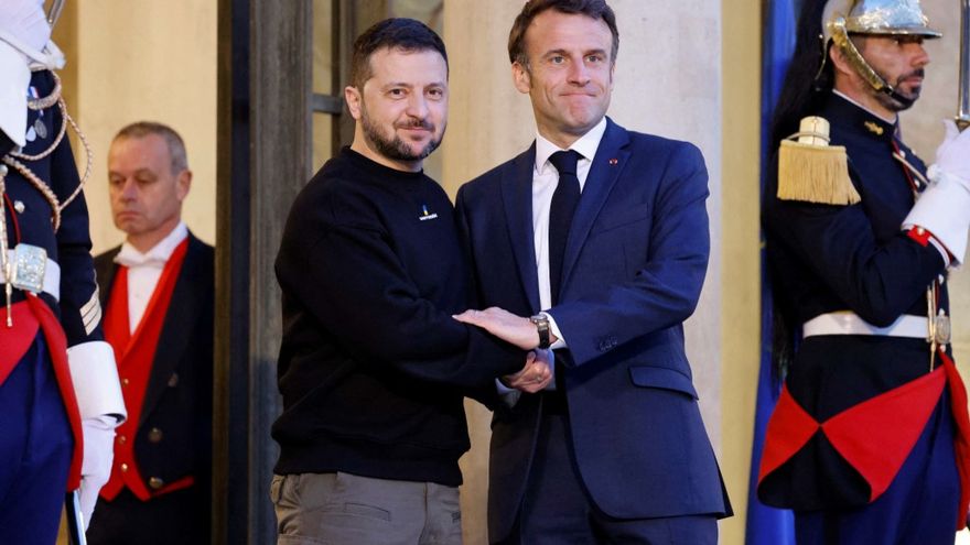 Según la oficina de Macron, ambos dirigentes discutirán del "apoyo" de Francia a las "urgentes necesidades militares y humanitarias de Ucrania" durante una cena en el palacio presidencial.
