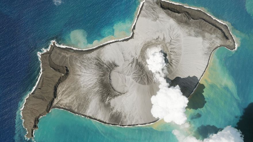 A través de imágenes tomadas desde el espacio, se pudo observar el momento en que la última erupción del volcán Hunga Tonga-Hunga Ha'apai envió un hongo de humo y ceniza al aire y una onda expansiva a través del mar circundante.