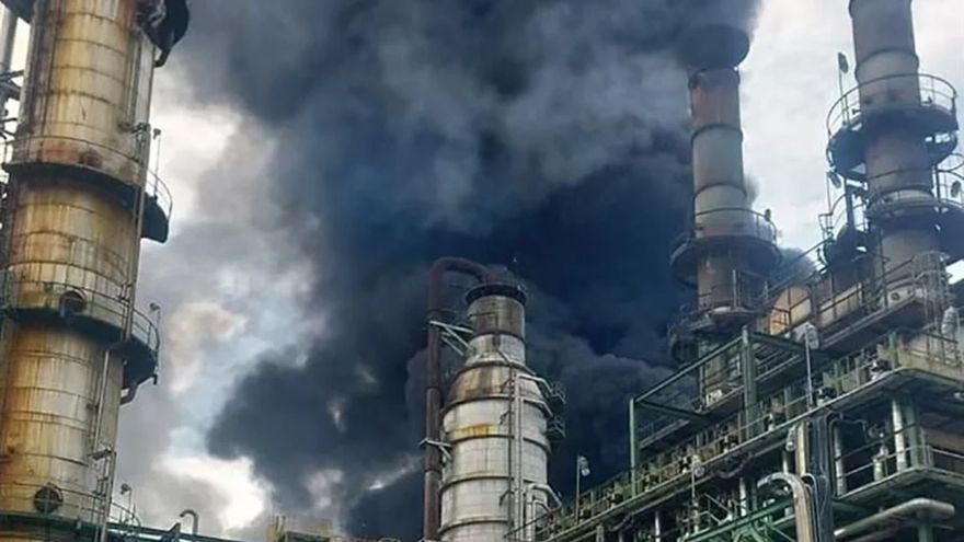 La fuerza pública y trabajadores de la refinería cercaron el paso hacia la central para preservar la seguridad y facilitar la circulación de vehículos de socorro, constató un periodista de la AFP.