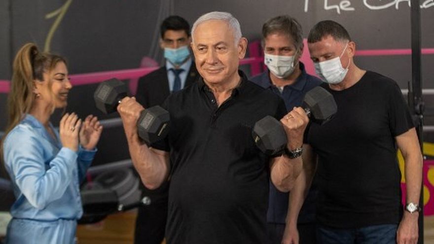 Con ropa deportiva y camiseta negra, el primer ministro Benjamin Netanyahu acudió el sábado por la noche a un gimnasio de Petah Tikva, cerca de Tel-Aviv, e invitó a los millones de israelíes poseedores de una "tarjeta verde" a acudir a los lugares abiertos para las personas vacunadas.