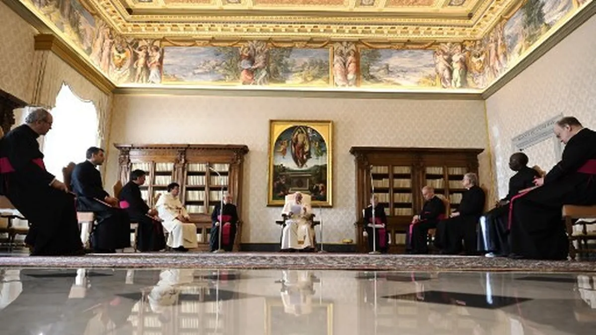 El papa Francisco recibió este viernes "sentado" a un grupo de miembros de un tribunal de la Santa Sede, debido a la ciática que padece y que le impidió pronunciar su discurso de pie.