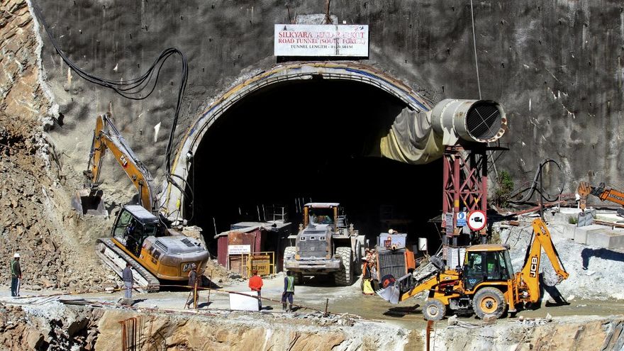 Las excavadoras retiran escombros y tierra desde el 12 de noviembre, cuando se derrumbó una parte de un túnel en construcción en el estado de Uttarakhand, en los Himalayas.