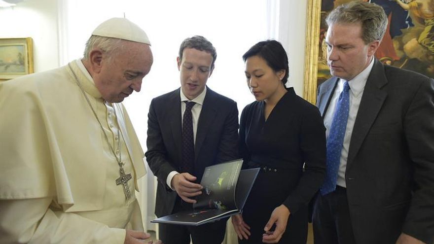 El papa Francisco se reunió hoy en el Vaticano con el fundador de la red social Facebook, Mark Zuckerberg, y su esposa, Priscilla Chan, para hablar de iniciativas para combatir la pobreza.
