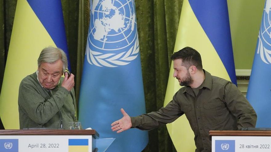 Reunión entre Guterres, secretario de la ONU y Zelenski, presidente de Rusia. / EFE