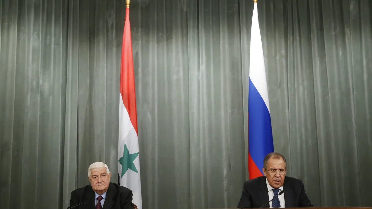 El ministro de Exteriores sirio, Walid al Mualem (izq.), y su homólogo ruso, Sergéi Lavrov, ofrecen una rueda de prensa tras su reunión en el Ministerio de Exteriores en Moscú. / EFE