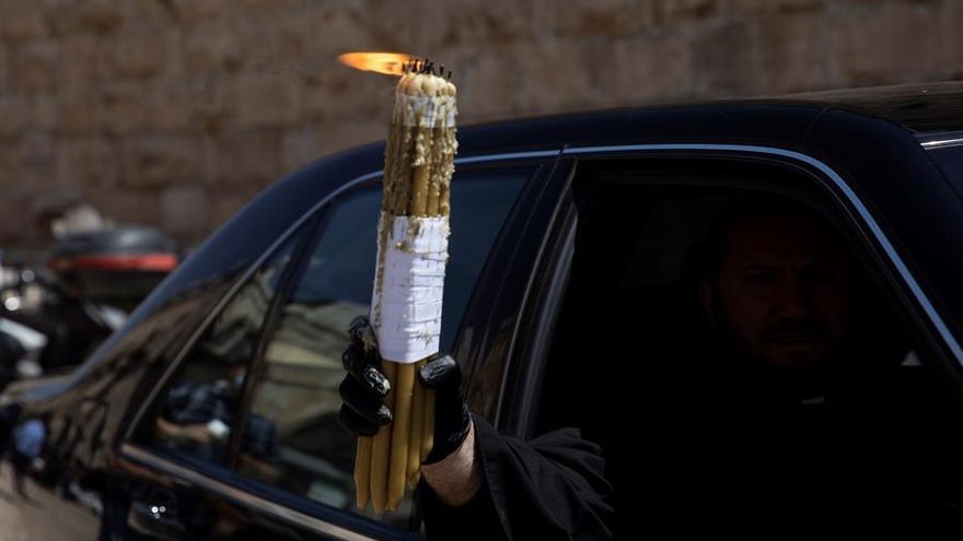 "Solo han dejado entrar a (unas) diez personas para recoger el fuego y luego repartirlo por otras áreas", explicó el cristiano jerosolimitano Michel Tarashi a Efe cuando intentó acercarse sin éxito a la iglesia con un ramillete de velas para prenderlas.