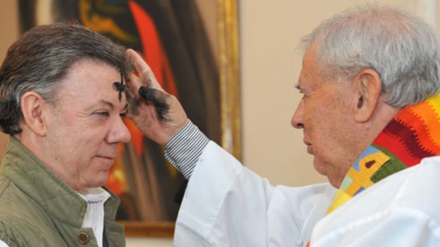El presidente de Colombia, Juan Manuel Santos, publicó este miércoles una fotografía durante la ceremonia de inicio de la Cuaresma previa a la Semana Santa, que coincide con el período antes de la anunciada firma de la paz con las FARC.