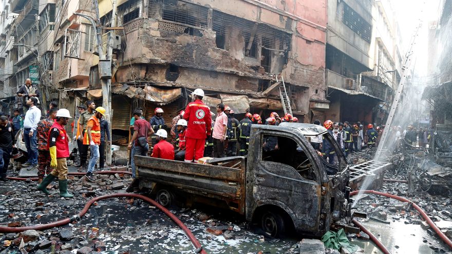 "Al menos 70 personas han muerto en el incidente", declaró a Efe el portavoz de los servicios de bomberos capitalinos Kamrul Hasan sobre el siniestro, que ha devastado parte del barrio de Chawkbazar tras afectar a siete edificios y varias tiendas y restaurantes.