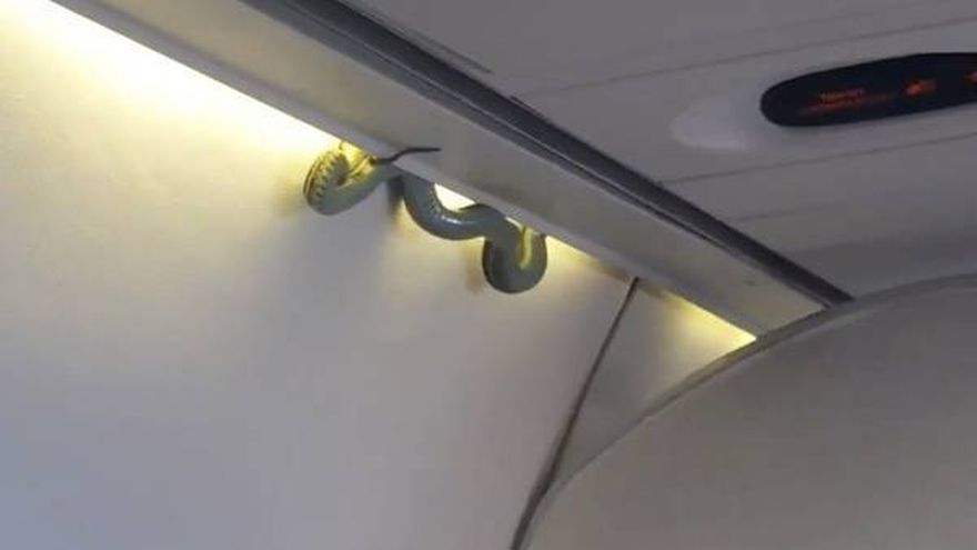 Gran sorpresa y miedo causó este domingo una serpiente descubierta en pleno vuelo de la aerolínea mexicana Aeroméxico, la cual cayó de la zona de portaequipaje, sobre los asientos de primera clase sin causar daño.