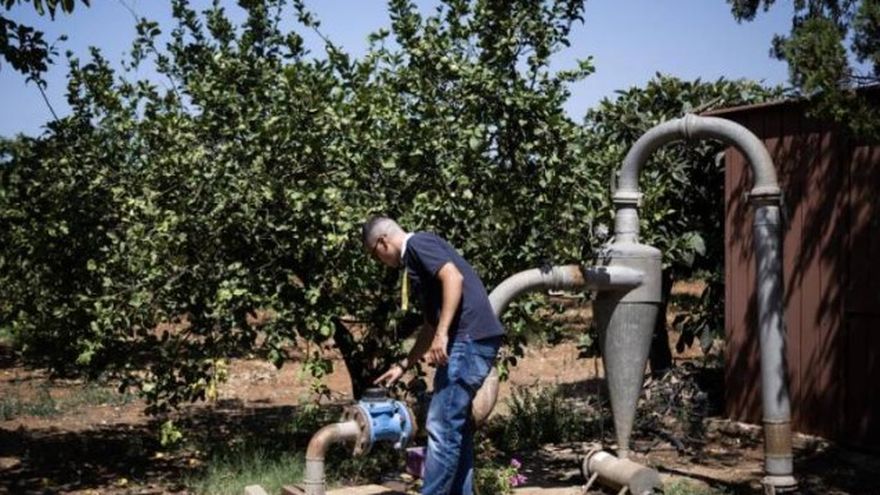 Las canalizaciones conectadas al embalse alimentan los sistemas de riego de los agricultores locales que, en contrapartida, tuvieron que cerrar sus pozos.