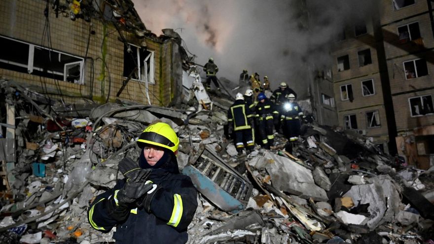 Un video publicado por los servicios de emergencia ucranianos en Facebook y Telegram mostraba a los rescatistas trabajando en la noche entre los escombros del edificio.