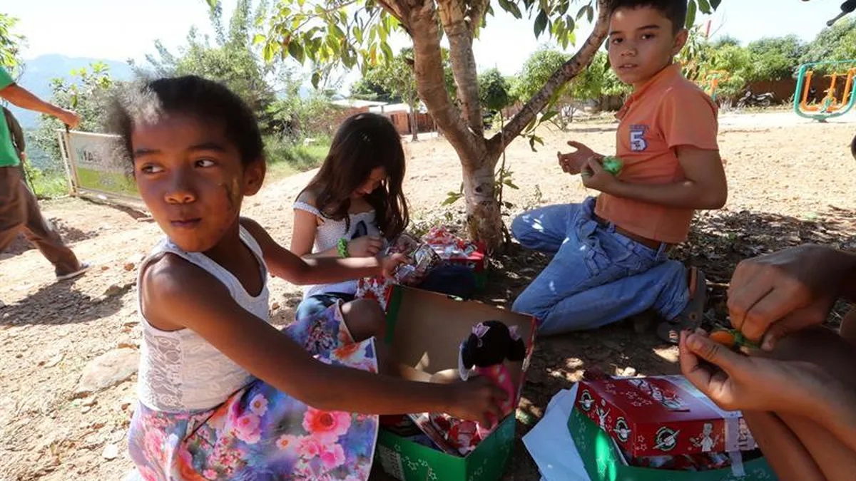 La celebración concluyó con la entrega de regalos a los niños asistentes, muchos de ellos hijos de exguerrilleros, al ritmo de villancicos y música popular colombiana.