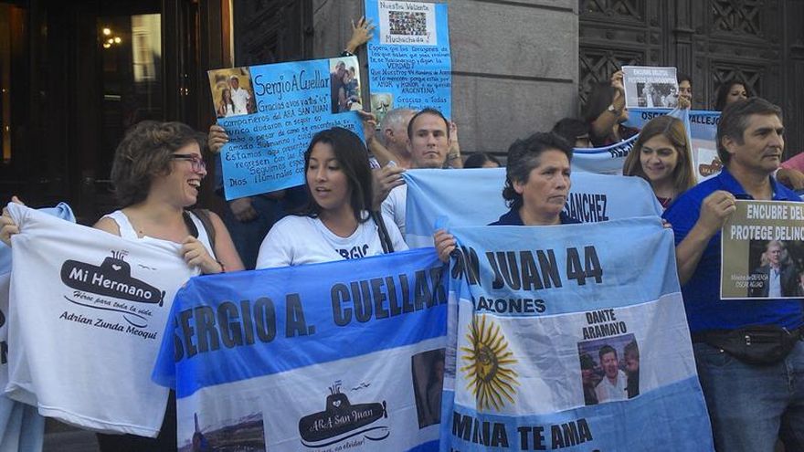 Las familias de los tripulantes del San Juan están acampadas desde la semana pasada en la céntrica Plaza de Mayo de Buenos Aires, frente a la Casa Rosada (sede del Ejecutivo), y mostraron su voluntad de mantener esa protesta hasta que haya "una resolución firmada" para la búsqueda del submarino.
