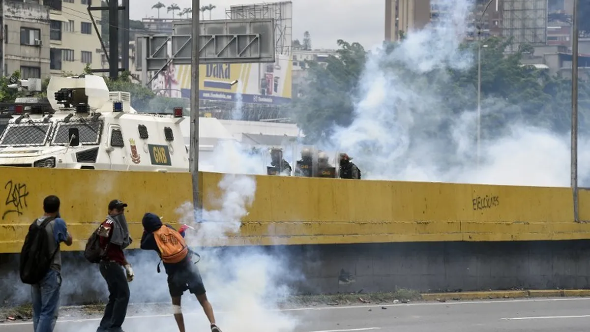 Militares de la Guardia Nacional y la policía, apoyados por carros antimonites blindados, bloqueaban con una lluvia de gases, chorros de agua y perdigones de goma la manifestación en una estratégica autopista del este de Caracas, mientras grupos de jóvenes les respondían con piedras y cócteles molotov, constaron periodistas de AFP.