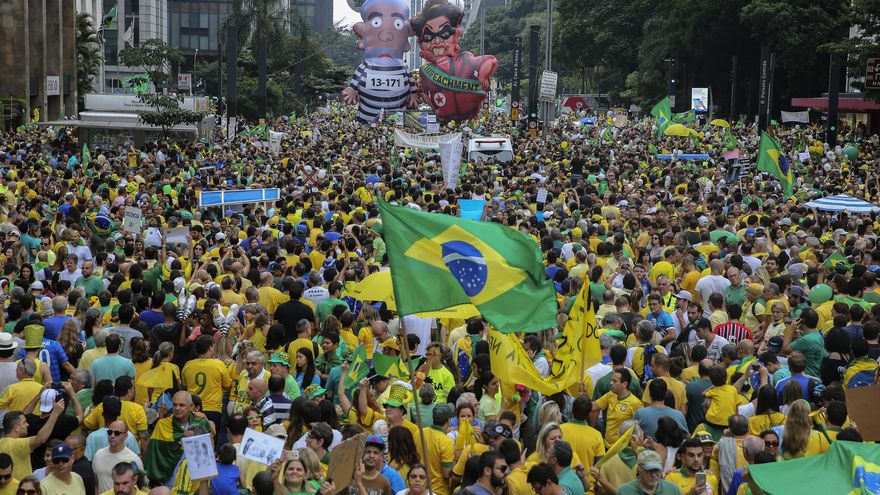 Así como cargaron contra Rousseff, las protestas también se dirigieron contra su antecesor y padrino político, Luiz Inácio Lula da Silva, ridiculizado por miles de personas con unos muñecos que lo mostraban con traje de presidiario.