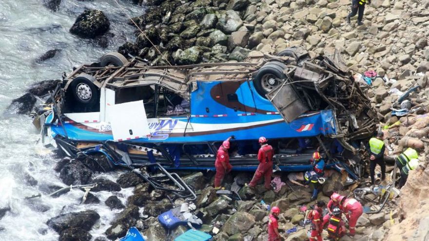 El vehículo de la empresa de transportes Perla del Sur se salió de la pista a la altura del kilómetro 104 de la carretera que va desde la ciudad de Nasca hasta Puquio y cayó por una pendiente de 120 metros.