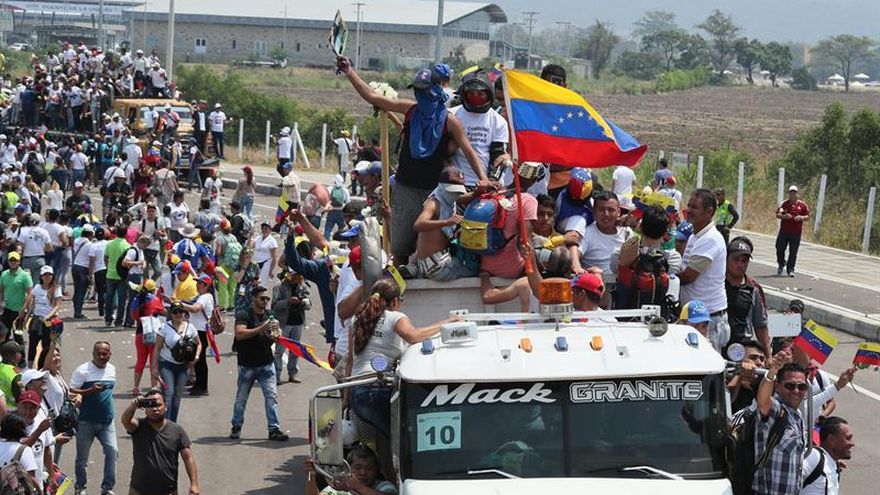El líder opositor venezolano Juan Guaidó anunció este sábado que el primer cargamento de ayuda humanitaria ingresó a territorio de Venezuela por la frontera con Brasil, pese al cierre ordenado por el presidente Nicolás Maduro.