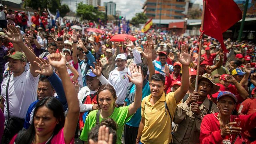 En la concentración chavista de hoy también hubo muestras de apoyo a Maduro, que enfrenta horas bajas y una crisis de legitimidad que ha llevado a la oposición y a una parte de la comunidad internacional a aseverar que "usurpa" la Presidencia, en la que se instaló con votos en 2013.
