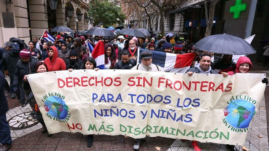 Cientos de personas se manifestaron este domingo en Santiago contra la política migratoria del Gobierno, donde exigieron el "fin del racismo institucional" y denunciaron la difícil situación que vive la comunidad migrante, especialmente la que se encuentra varada en la frontera con Perú.