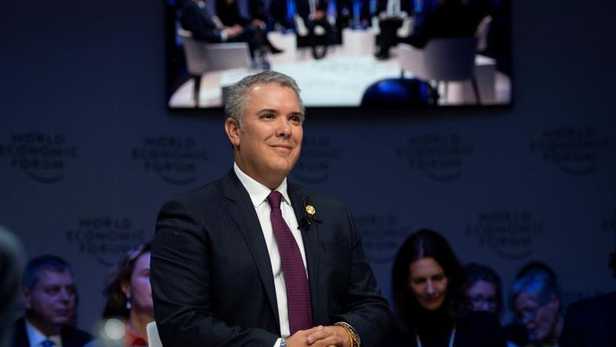 El presidente de Colombia, Iván Duque, junto al de Brasil, Jair Bolsonaro, y los representantes de los gobiernos de Perú y Canadá, reconocieron este miércoles a Juan Guaidó como "presidente de Venezuela", en una declaración en Davos.