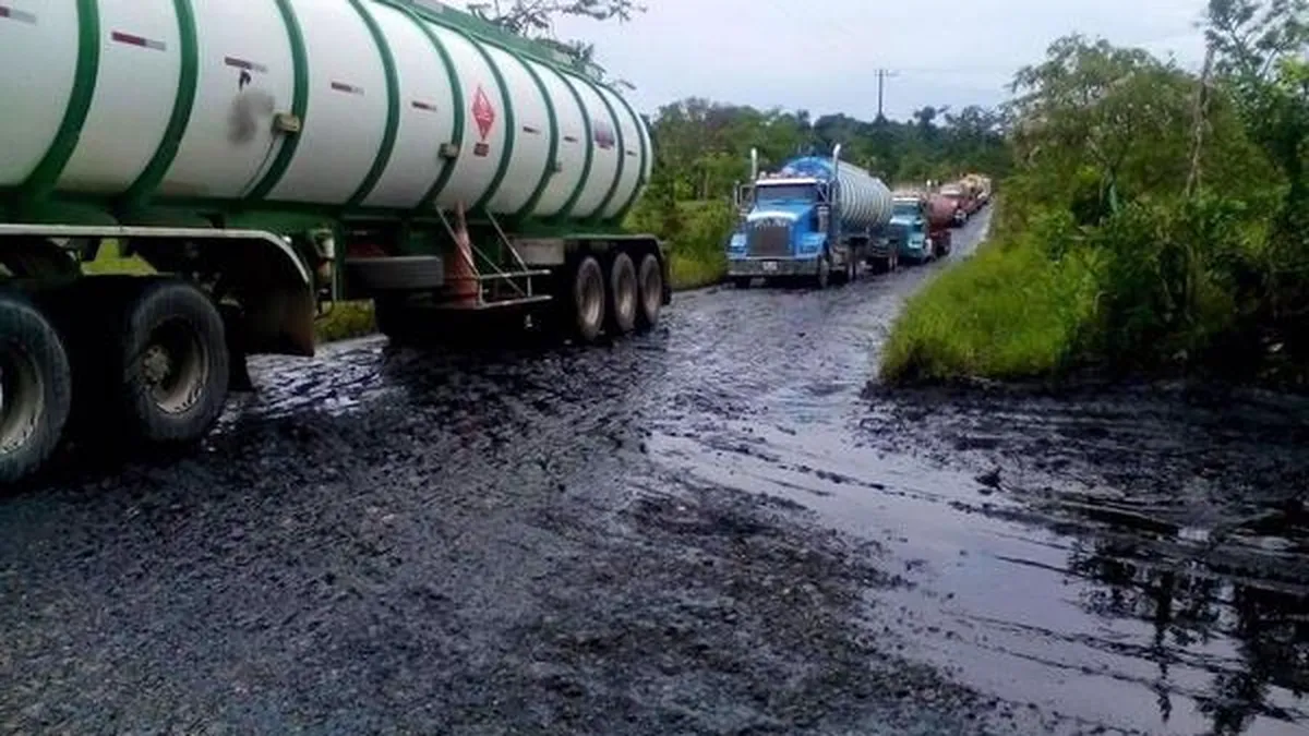 Guerrilleros de las FARC obligaron a conductores de 19 camiones cisterna a derramar el crudo que transportaban en Putumayo lo que probablemente afecte fuente hí­dricas de la zona. / Twitter @gusgomez1701