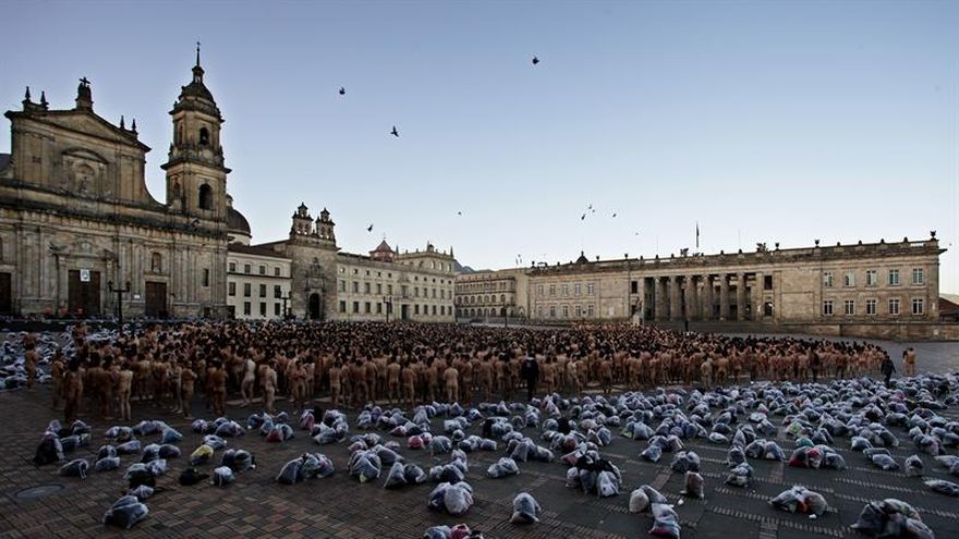 El estadounidense Spencer Tunick, famoso por fotografiar multitudes sin ropa, desnudó este domingo a más de 6.000 personas frente al Congreso de Colombia, en Bogotá, que según los organizadores del evento se convirtió en la ciudad sudamericana donde más gente ha posado para el artista.