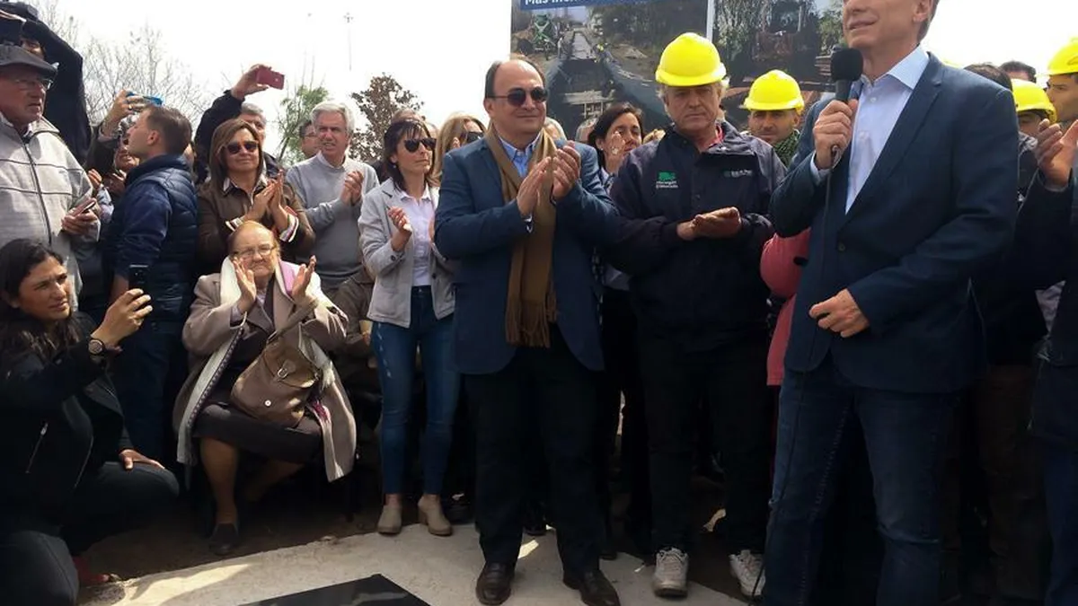Fotografía cedida por la Presidencia de Argentina que muestra a su mandatario, Mauricio Macri (d), en el acto de inauguración de unas obras en la localidad bonaerense de Saladillo (Argentina). / EFE