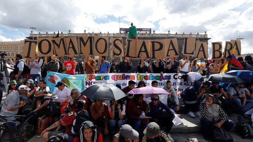 Desde el 21 de noviembre, miles de colombianos se congregan en las calles de las principales ciudades del país para manifestarse en contra de la política económica y social del presidente al que acusan de tramitar algunos de estos temas "sin haber estado en discusión en la mesa".