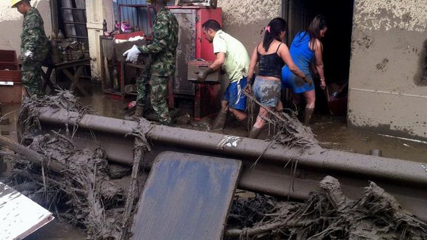En las labores trabajan militares del Ejército, miembros de la Policía y de la Defensa civil que realizan las labores de limpieza de escombros y ayudan a los damnificados a recuperar sus enseres en casas que quedaron anegadas por el barro.