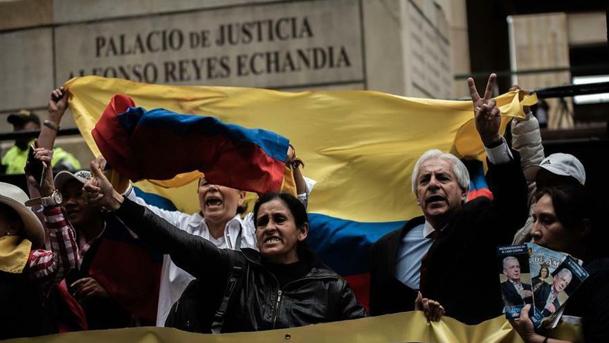 Al mismo tiempo, miles de personas salieron a las calles de Bogotá para mostrar su apoyo o rechazo al exmandatario en una jornada de manifestaciones que en general fue pacífica, pese a que hubo momentos de tensión cuando un grupo de estudiantes intentó romper un cordón policial en las cercanías del Palacio de Justicia.