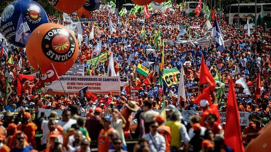 La protesta tenía como foco inicial expresar el descontento de los trabajadores con unas polémicas reformas de corte liberal que impulsa el Gobierno, pero en las últimos días se ha agregado a sus consignas la gráfica frase "Fuera Temer", escrita en muchas de las pancartas que los manifestantes exhibían hoy.