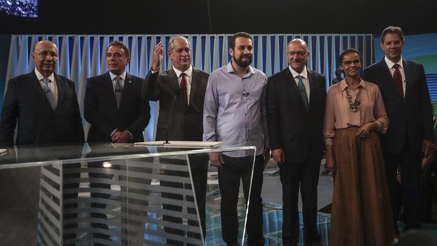 El jueves 4 de octubre, el canal de televisión principal de Brasil, Globo, realizó la transmisión del debate presidencial contando con la presencia de 7 de los 13 candidatos que se enfrentaron cara a cara. Debido a recomendaciones por parte de los médicos de Bolsonaro, no asistió al debate.
