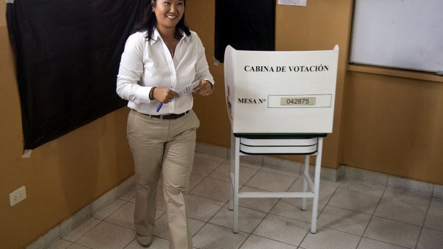 Una sonriente Keiko Fujimori, quien hizo fila como una ciudadana más para sufragar en el distrito de Surco (sureste de Lima), blandía a la salida su documento de identidad con la pegatina que acredita el cumplimiento de un deber ciudadano obligatorio en Perú, mientras era seguida por un enjambre de periodistas.
