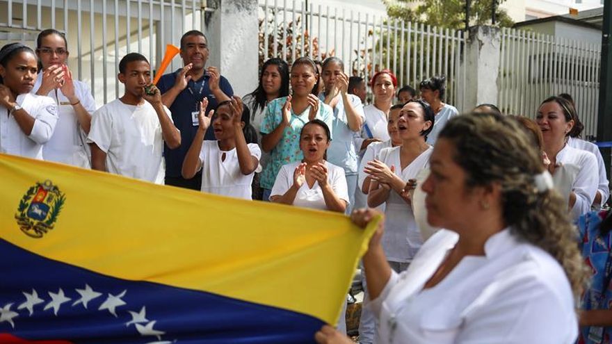 Las cercanías de los principales hospitales de la capital venezolana, así otros ubicados en los estados Lara, Mérida, Trujillo, Portuguesa (oeste), Falcón (noroeste), Aragua y Carabobo (centro) fueron escenario de manifestaciones en las que los enfermeros pidieron salarios que les alcancen, al menos, para comer.