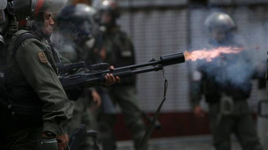Un agente de la Guardia Nacional venezolana dispara gases lacrimógenos a una marcha opositora hacia la Corte Suprema contra la Asamblea Constituyente convocada por el gobierno, Caracas / Servicios Internacionales