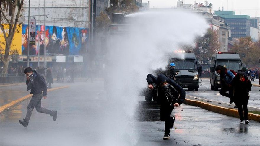 En el puerto de Valparaíso la policía impidió también que los estudiantes marcharan, mientras en otras ciudades como La Serena, Concepción y Temuco hubo manifestaciones pacíficas.