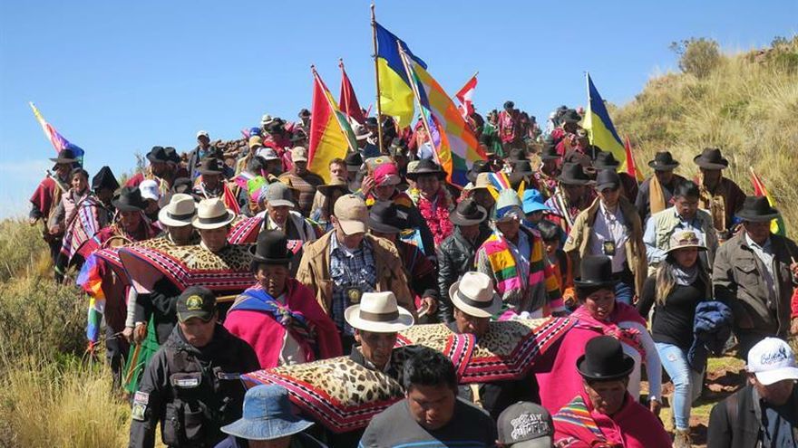 La ministra de Culturas, Wilma Alanoca, algunos embajadores, alcaldes de comunidades cercanas y representantes de Perú, Argentina, Chile, Colombia y Ecuador, formaron parte de este recorrido junto al mandatario boliviano.
