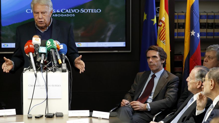 Los expresidentes del Gobierno español Felipe González (PSOE, socialista) y José María Aznar (PP, centroderecha) pidieron hoy la libertad para todos los opositores presos en Venezuela y denunciaron como "farsa" el diálogo que mantuvo el gobierno de Nicolás Maduro con la oposición.