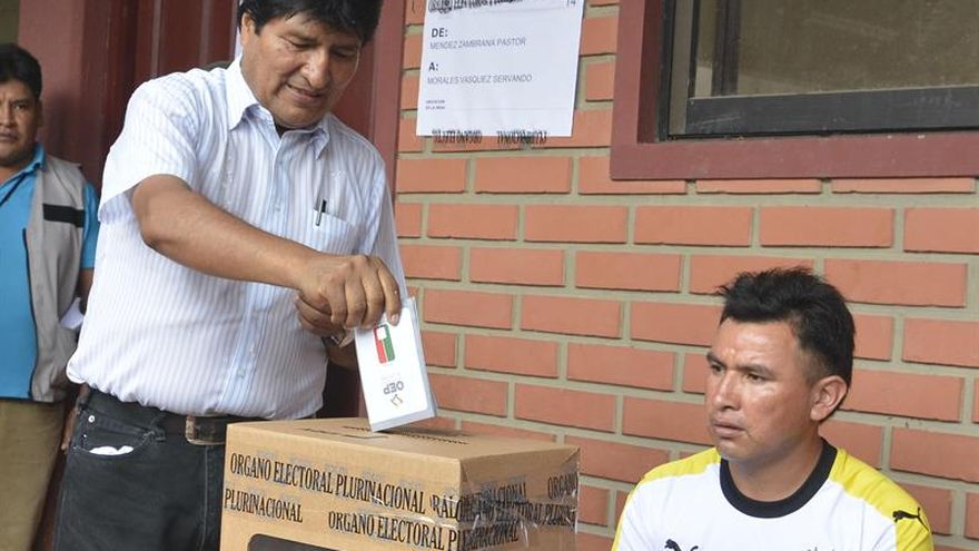 El presidente Morales emitió su voto en la localidad Villa 14 de Septiembre, en la zona cocalera del Chapare, que es el bastión sindical donde forjó su liderazgo político hasta llegar al poder.