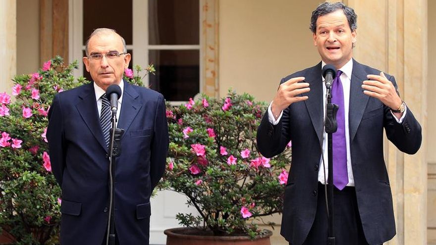 El jefe del equipo negociador del Gobierno colombiano Humberto de la Calle (i), y el alto comisionado para la Paz, Sergio Jaramillo (d). / EFE