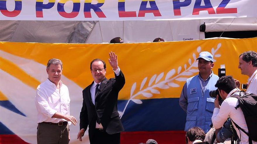 El presidente de Francia, François Hollande, aseguró hoy que el proceso de paz de Colombia es un ejemplo para el mundo y prometió que su país continuará dando su ayuda en el periodo de posconflicto.