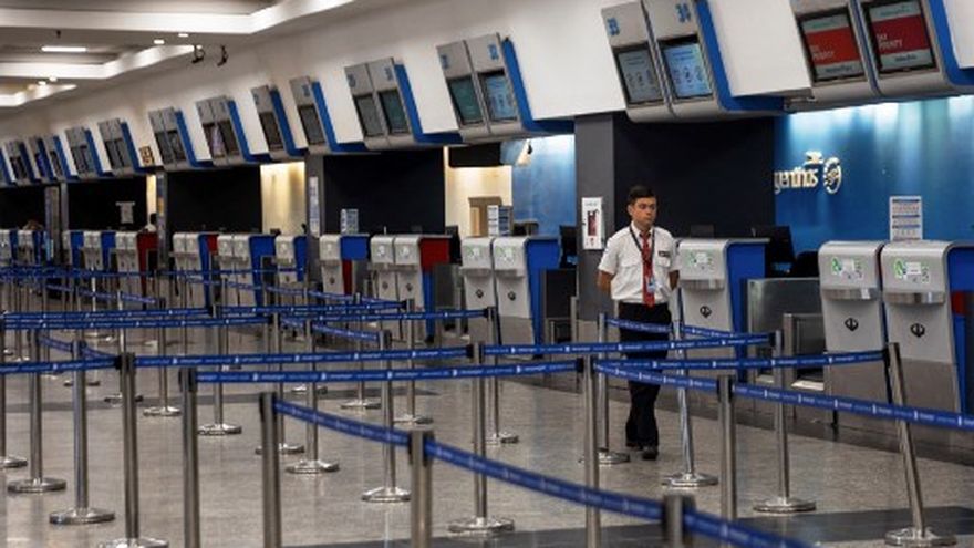 En el aeropuerto internacional de Ezeiza, en la periferia sur de Buenos Aires, se mantiene una actividad mínima acotada a las empresas American Airlines y la línea de cabotaje FlyBondi, debido a que cuentan con personal propio para la operatoria en tierra.
