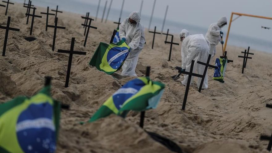 Cerca de 40 voluntarios han abierto un centenar de fosas rasas para simbolizar las muertes por COVID-19 y han pedido así medidas más contundentes de combate al avance de la enfermedad en Brasil, el segundo país del mundo con más casos y que ocupa el tercer puesto en número de fallecidos.