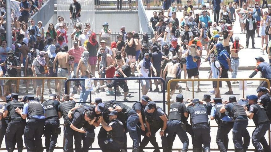 Luego de varias horas de protesta frente a la Casa de Gobierno de Mendoza, un grupo de manifestantes comenzó a lanzar piedras y botellazos contra la Policía, que respondió con gas pimienta para dispersarlos, según informó el portal MDZ.