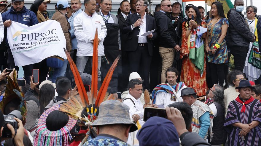 Su vicepresidenta electa, la ambientalista Francia Márquez, participó en la ceremonia tradicional y recibió de las comunidades las mismas consignas.