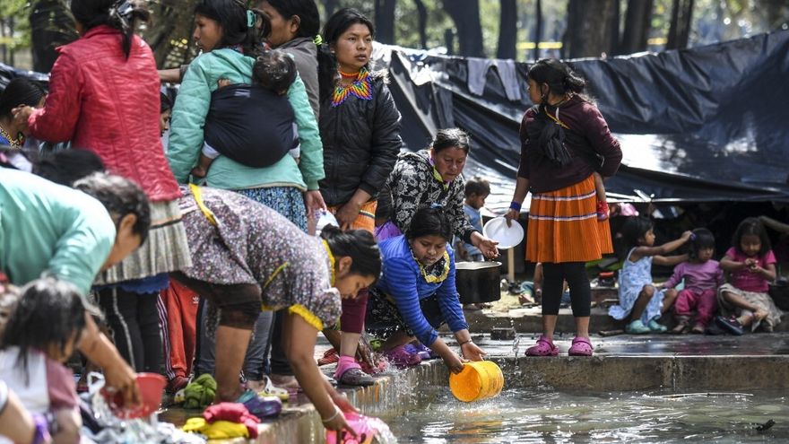 Los originarios improvisaron una docena de carpas con plástico negro en el centro del parque y cocinan en hogueras. Según la estatal Defensoría del Pueblo (ombudsman) suman entre 300 y 400 personas incluyendo decenas de niños y bebés.